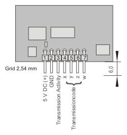 On a state of change on PIN 3 (High), a telegram according to the coding on PIN 4-7 is transmitted. This signal can be used for all operation modes of Easywave-receivers, except for the UP/STOP/DOWN mode.