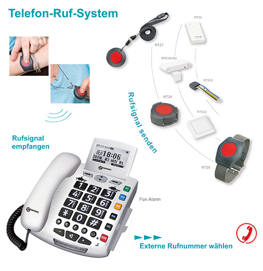 Das Telefon ist ideal, um pflegebedürftigen Personen die Möglichkeit zu geben, in „Notsituationen“ Hilfe herbei zu rufen.