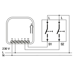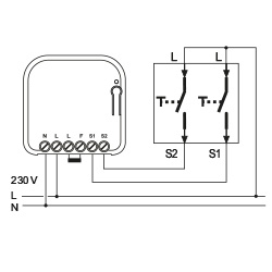 An den stationären Sender RTS39 können bis zu zwei Taster oder zwei Schalter mit 230 V angeschlossen werden.